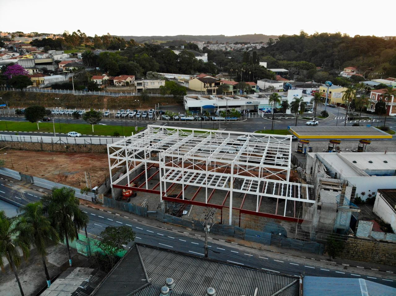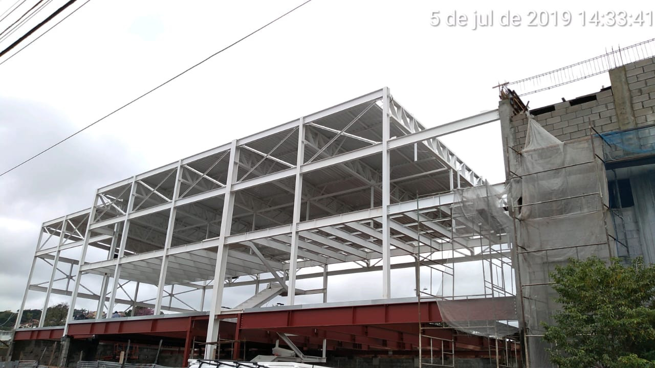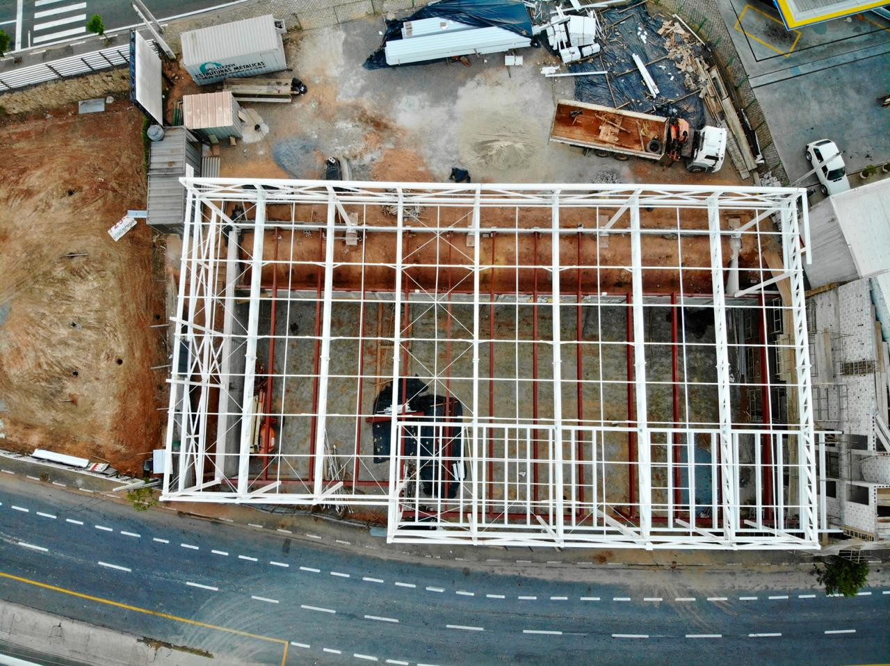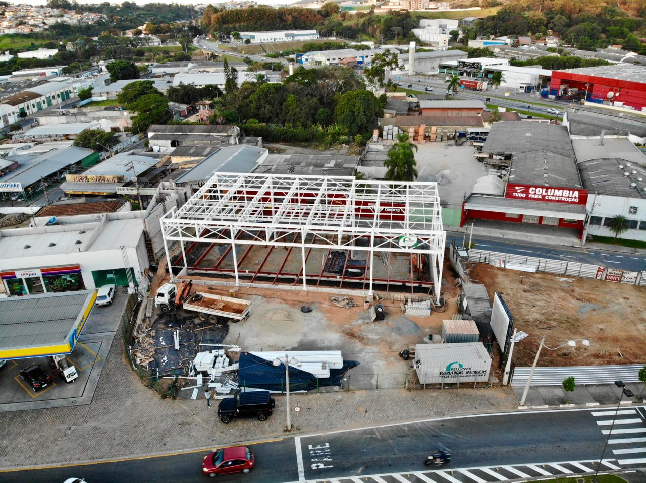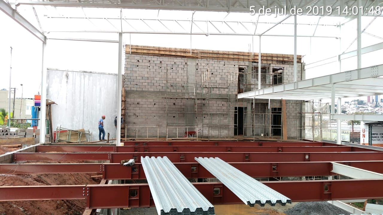 Obra da Mercosul Montagens, substituição das telhas de fibrocimento por telhas metálicas da loja e do depósito.